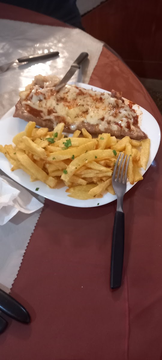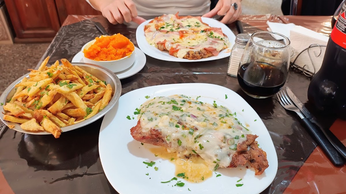Muy lindo lugar, recomiendo mucho la milanesa de ternera a mí gusto napolitana pero simple también es riquísima tranquilamente comen 2 personas. la guarnición únicamente para mí forma de comer es más individual pero la milanesa es gigante, tienen bebidas grandes (línea coca),el flan es casero, riquísimo y muy económico. Sin dudas volvería para probar el resto de la comida. Recomiendo no ir muy tarde porque cierran a las 23.